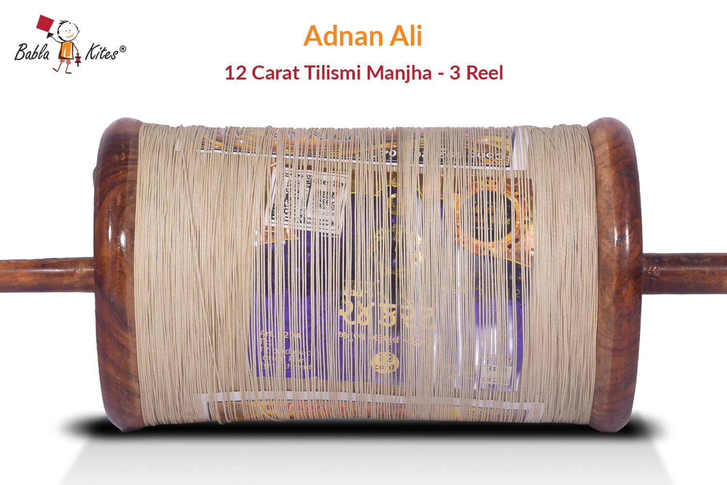 One of the strongest 12 Cord – 24 Carat by Coats Manjha (250 gm ) made by Adnan Ali (24 Carat Article) with Acrylic Spool. Made by Adnan Ali – Limited Stock online for kites flying and competition. Coats is the best manjha brand. 100% Cotton Thread. Buy kite & thread online. Exclusively available only at Babla kites.